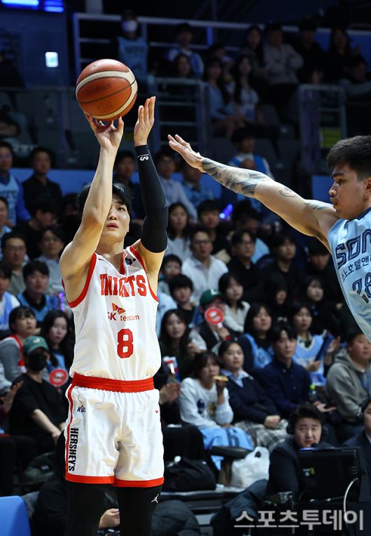 [스포츠투데이 팽현준 기자] 5일 경기도 고양소노아레나에서 열린 2025-2026 프로농구 고양 소노와 서울 SK의 경기, SK 안영준이 공격하고 있다. 2025.12.05. [스포츠투데이 팽현준 기자 sports@stoo.com]