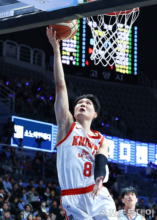 [스포츠투데이 팽현준 기자] 5일 경기도 고양소노아레나에서 열린 2025-2026 프로농구 고양 소노와 서울 SK의 경기, SK 안영준이 공격하고 있다. 2025.12.05.