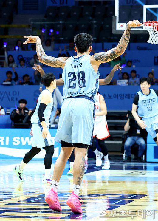 [스포츠투데이 팽현준 기자] 5일 경기도 고양소노아레나에서 열린 2025-2026 프로농구 고양 소노와 서울 SK의 경기, 소노 켐바오가 3점슛을 성공하고 있다. 2025.12.05. [스포츠투데이 팽현준 기자 sports@stoo.com]