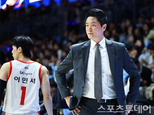 [스포츠투데이 팽현준 기자] 5일 경기도 고양소노아레나에서 열린 2025-2026 프로농구 고양 소노와 서울 SK의 경기, SK 전희철 감독이 선수들을 보고 있다. 2025.12.05. [스포츠투데이 팽현준 기자 sports@stoo.com]