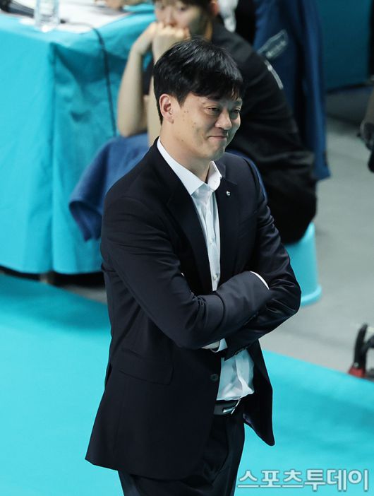 [스포츠투데이 권광일 기자] 2025-2026 진에어 V-리그 여자부 GS칼텍스-페퍼저축은행 경기가 5일 서울 장충체육관에서 열렸다. GS칼텍스 이영택 감독이 경기를 지켜보고 있다. 2025.12.05. [스포츠투데이 권광일 기자 sports@stoo.com]