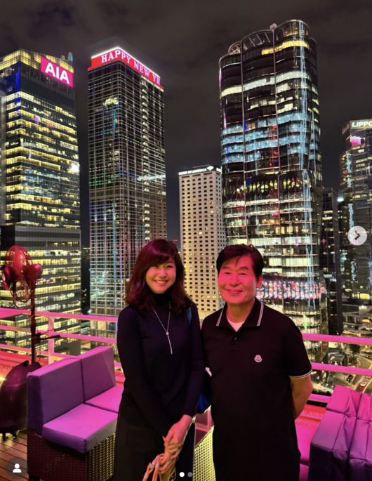 공개된 사진에는 홍콩의 한 루프탑에서 화려한 야경을 배경으로 활짝 웃고 있는 강수정과 이연복 셰프의 모습이 담겼다. 다른 컷에서는 예술 작품 앞에서 나란히 서서 밝게 미소 짓는 등 두 사람의 자연스러운 모습이 눈길을 끌었다.