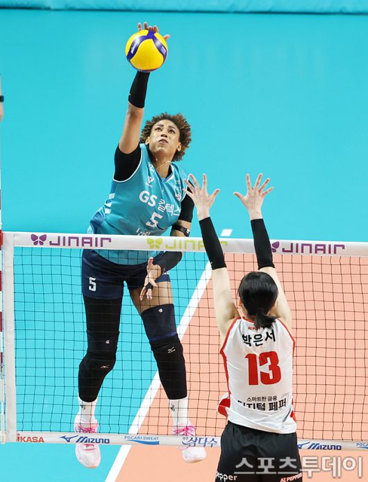 [스포츠투데이 권광일 기자] 2025-2026 진에어 V-리그 여자부 GS칼텍스-페퍼저축은행 경기가 5일 서울 장충체육관에서 열렸다. GS칼텍스 실바가 스파이크를 때리고 있다. 2025.12.05. [스포츠투데이 권광일 기자 sports@stoo.com]