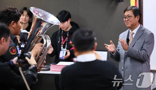 (서울=뉴스1) 김명섭 기자 = 최휘영 문화체육관광부 장관이 5일 서울 마포구 YTN홀에서 열린 ‘꿈의 예술단 15주년 기념행사’ 시작에 앞서 대기실을 찾아 단원들을 격려하고 있다. (문화체육관광부 제공. 재판매 및 DB 금지) 2025.12.5/뉴스1msiron@news1.krCopyright ⓒ 뉴스1. All rights reserved. 무단 전재 및 재배포, AI학습 이용 금지.