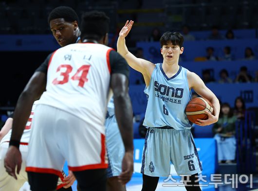 [고양(경기)=스포츠투데이 팽현준 기자] 5일 경기도 고양소노아레나에서 열린 2025-2026 프로농구 고양 소노와 서울 SK의 경기, 소노 이정현이 사인을 보내고 있다. 2025.12.05. [스포츠투데이 팽현준 기자 sports@stoo.com]