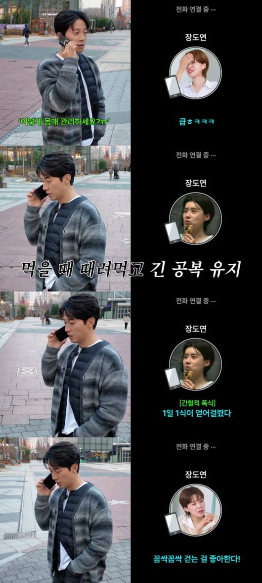 장도연은 '174cm·56kg' 몸매 유지를 위해 일상 속 생활 습관에 대해 "1일 1식이다. 그리고 혼자 걷는 걸 좋아한다"고 덧붙였다. 허경환은 "걸으면 한걸음에 2m씩 가지 않냐"고 농담을 건네자 장도연은 "개미 110마리 정도 죽인다"며 재치 있게 답해 웃음을 자아냈다.