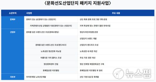 [서울=뉴스핌] 김용석 기자 = 문화체육관광부, 산업통상자원부, 국토교통부는 산업단지를 청년이 찾는 활력 넘치는 공간으로 전환하기 위한 '문화선도 산업단지'(문화선도산단) 2026년 신규 3개소 선정을 위한 통합 공모를 시작한다고 5일 밝혔다. 이번 공모는 2025년 12월 5일부터 2026년 2월 6일까지 진행된다.