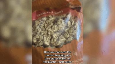 조시가 촬영한 영상에는 포장을 뜯지 않은 시리얼 봉지 내부에서 귀리 덩어리가 바스락거리며 움직이는 모습, 긁고 씹는 듯한 소리까지 고스란히 담겼다.