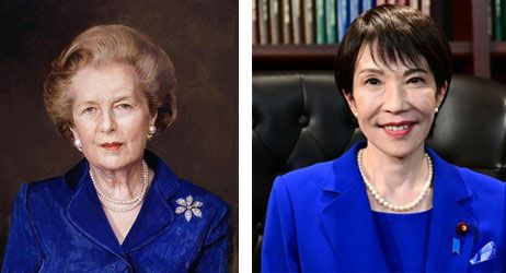 마거릿 대처 전 영국 총리(왼쪽)와 다카이치 사나에 일본 총리. 경향신문 자료사진·AFP연합뉴스 |