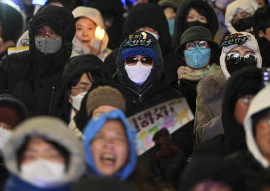 헌법재판소가 윤석열 전 대통령 탄핵 사건에 대해 인용을 선고한 4일 서울 용산구 한남동 관저 인근에서 탄핵에 찬성한 시민들이 환호하고 있다. 연합뉴스 |