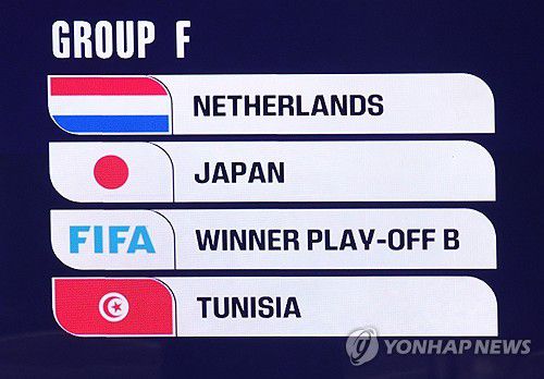 추첨 결과, 일본은 네덜란드, 튀니지, 유럽 예선 플레이오프 패스B 승자와 함께 F조에 묶엿다. 내년 3월에 열리는 플레이오프에서 스웨덴, 우크라이나, 폴란드, 알바니아 중 최종 승자 F조 한 자리를 차지한다.