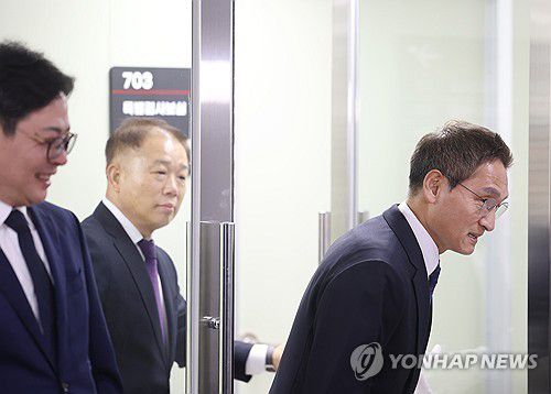 (서울=연합뉴스) 신준희 기자 =. 관봉권 띠지 폐기 의혹'과 '쿠팡 퇴직금 불기소 외압 의혹'을 수사할 안권섭 특별검사가 6일 서초구 사무실에서 열린 특검팀 현판식을 마치고 퇴장하고 있다. 2025.12.6