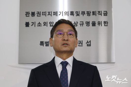 안권섭 특별검사가 6일 오전 서울 서초구 관봉권 띠지 폐기 의혹 및 쿠팡 퇴직금 불기소 외압 의혹 진상규명을 위한 특검 사무소에서 열린 현판식에서 취재진의 질문에 답하고 있다.