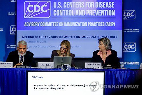 (워싱턴=연합뉴스) 홍정규 특파원 = 미국의 백신 접종 정책을 좌우하는 질병통제예방센터(CDC) 산하 예방접종자문위원회(ACIP)가 오랫동안 유지된 '신생아 B형 간염 예방접종 권고'를 5일(현지시간) 폐기하기로 결정했다.