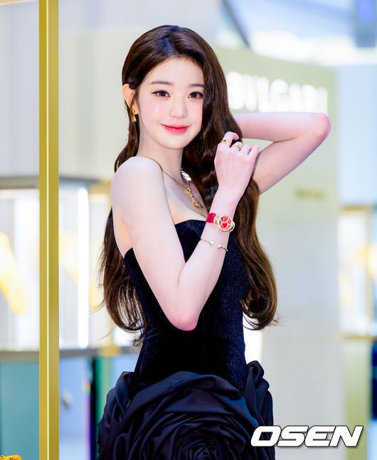장원영은 지난 4일 서울 신세계백화점 강남점에서 열린 럭셔리 주얼리 브랜드 불가리(BVLGARI)의 ‘홀리데이 디바스 드림’ 팝업 포토월에 참석해 한겨울에도 꽃처럼 피어난 ‘흑장미 비주얼’로 시선을 사로잡았다.