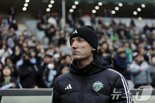 (서울=뉴스1) 박정호 기자 = 타노스 전북현대 수석코치가 6일 오후 서울 마포구 월드컵로 서울월드컵경기장에서 열린 광주FC와 전북현대의 2025 하나은행 코리아컵 결승전에서 전북 서포터즈를 바라보고 있다. 2025.12.6/뉴스1pjh2035@news1.krCopyright ⓒ 뉴스1. All rights reserved. 무단 전재 및 재배포, AI학습 이용 금지.
