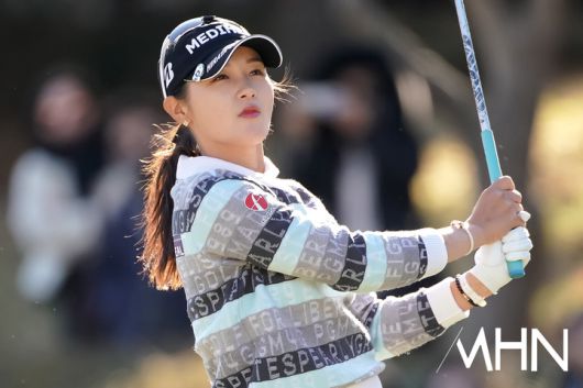 메디힐 박현경과 롯데 황유민 2경기가 열린 가운데, 박현경이 1번홀 경기를 펼치고 있다.