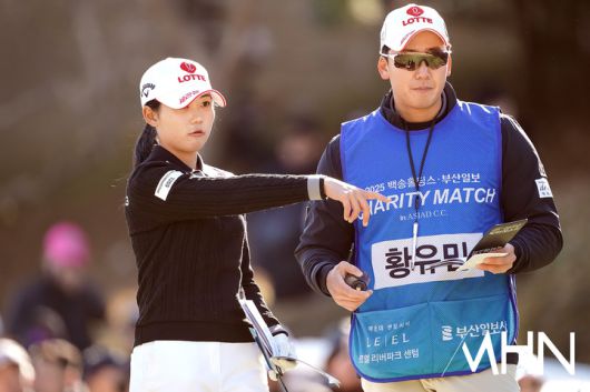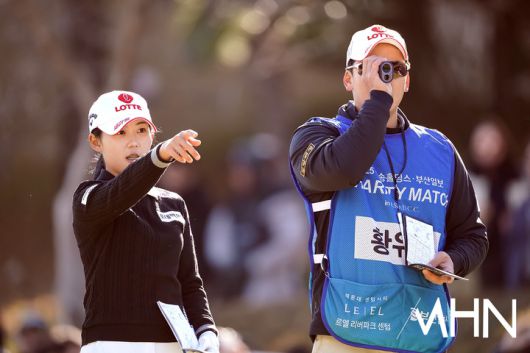 [mhn포토] 황유민, 캐디 박중근과 살피는 공략지점