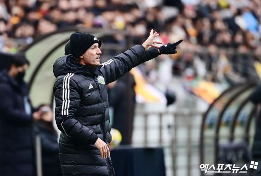 (엑스포츠뉴스 박지영 기자) 6일 오후 서울월드컵경기장에서 열린 '2025 하나은행 코리아컵 결승전' 광주FC와 전북 현대의 경기, 전북 타노스 코치가 작전 지시를 ㅐㄴ리고 있다.박지영 기자 jypark@xportsnews.com