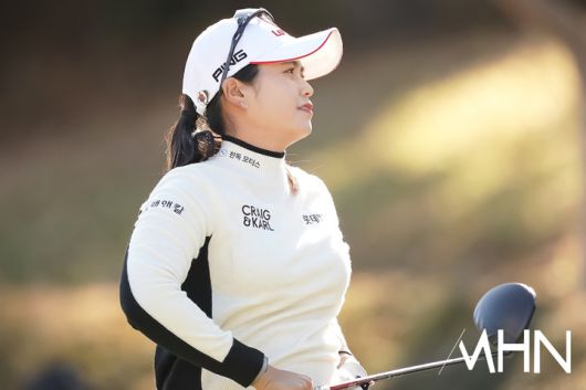 메디힐 배소현과 롯데 최혜진 3경기가 열린 가운데, 최혜진이 1번홀 경기를 펼치고 있다.