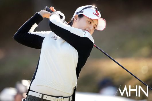 메디힐 배소현과 롯데 최혜진 3경기가 열린 가운데, 최혜진이 1번홀 경기를 펼치고 있다.