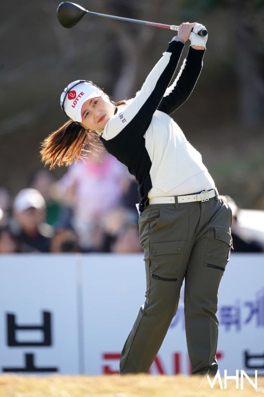 메디힐 배소현과 롯데 최혜진 3경기가 열린 가운데, 최혜진이 1번홀 경기를 펼치고 있다.