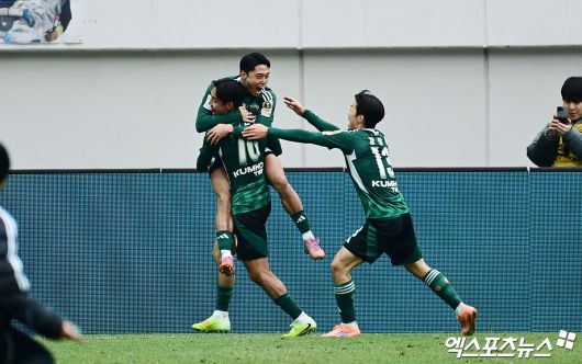 (엑스포츠뉴스 박지영 기자) 6일 오후 서울월드컵경기장에서 열린 '2025 하나은행 코리아컵 결승전' 광주FC와 전북 현대의 경기, 전북 이동준이 골을 넣은 뒤 동료들과 기뻐하고 있다.박지영 기자 jypark@xportsnews.com