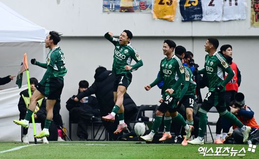 (엑스포츠뉴스 박지영 기자) 6일 오후 서울월드컵경기장에서 열린 '2025 하나은행 코리아컵 결승전' 광주FC와 전북 현대의 경기, 전북 이동준이 골을 넣은 뒤 동료들과 기뻐하고 있다.박지영 기자 jypark@xportsnews.com