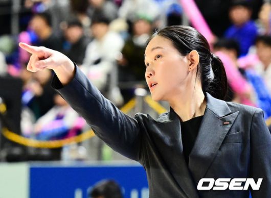 [OSEN=용인, 지형준 기자] 6일 오후 용인실내체육관에서 BNK금융 2025-26 여자프로농구 삼성생명과 BNK 썸의 경기가 열렸다. 중위권 경쟁을 펼치는 두 팀의 대결이다. 삼성생명은 4위(2승3패), BNK 썸은 3위(3승 2패)를 기록중이다. 1쿼터 BNK 썸 박정은 감독이 작전을 지시하고 있다. 2025.12.06 /jpnews@osen.co.kr