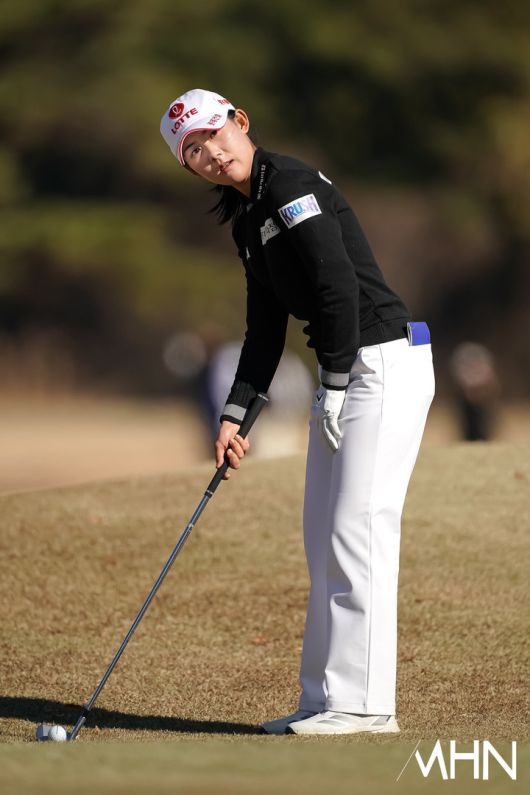 메디힐 박현경과 롯데 황유민 2경기가 열린 가운데, 황유민이 3번홀 경기를 펼치고 있다.