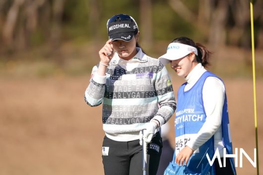 메디힐 박현경과 롯데 황유민 2경기가 열린 가운데, 박현경이 3번홀 경기를 펼치고 있다.