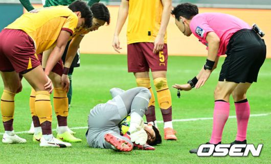 후반 광주 김경민이 조성권과 충돌하며 부상을 당하고 있다. 2025.12.06 /cej@osen.co.kr