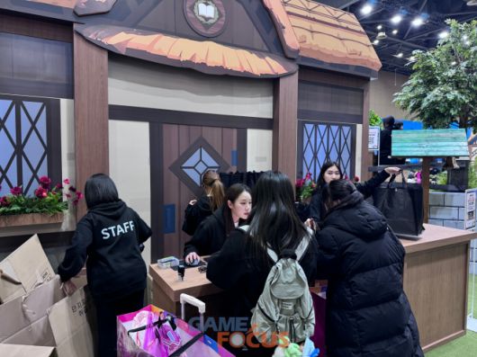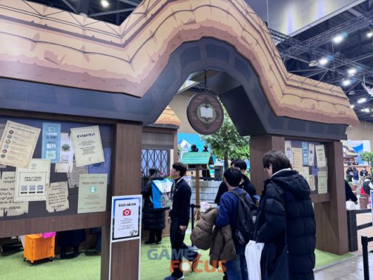 먼저 부스 입구에 위치한 '학교'에서는 입장 안내와 함께 웰컴 기프트를 받을 수 있다. 부스 중앙 '티르코네일 광장과 풀밭 목장'에서는 '마비노기' 하면 떠오르는 상징인 캠프파이어 조형물로 꾸며진 휴식 공간이 마련됐다.