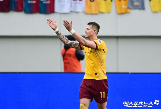 (엑스포츠뉴스 박지영 기자) 6일 오후 서울월드컵경기장에서 열린 '2025 하나은행 코리아컵 결승전' 광주FC와 전북 현대의 경기, 광주 프리드욘슨이 동점골을 넣은 뒤 세리머니를 하고 있다.박지영 기자 jypark@xportsnews.com
