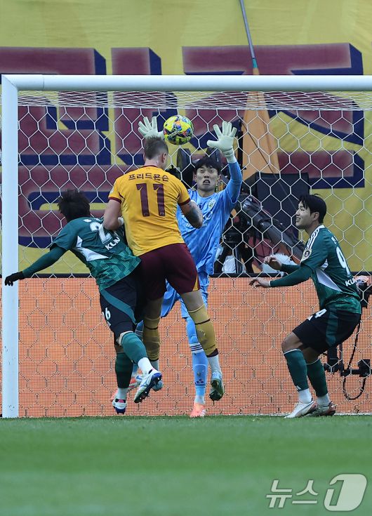 (서울=뉴스1) 박정호 기자 = 6일 오후 서울 마포구 월드컵로 서울월드컵경기장에서 열린 광주FC와 전북현대의 2025 하나은행 코리아컵 결승전에서 광주 프리드욘슨이 후반 동점골을 터트리고 있다. 2025.12.6/뉴스1pjh2035@news1.krCopyright ⓒ 뉴스1. All rights reserved. 무단 전재 및 재배포, AI학습 이용 금지.
