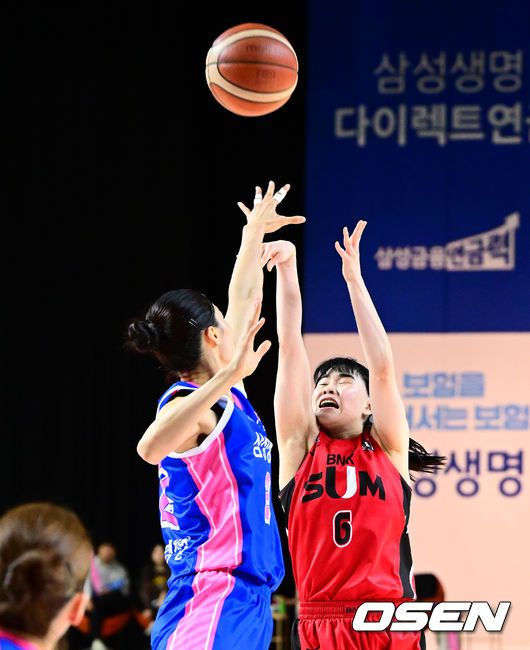[OSEN=용인, 지형준 기자] 6일 오후 용인실내체육관에서 BNK금융 2025-26 여자프로농구 삼성생명과 BNK 썸의 경기가 열렸다. 중위권 경쟁을 펼치는 두 팀의 대결이다. 삼성생명은 4위(2승3패), BNK 썸은 3위(3승 2패)를 기록중이다. 2쿼터 BNK 썸 이소희가 슛을 시도하고 있다. 2025.12.06 /jpnews@osen.co.kr