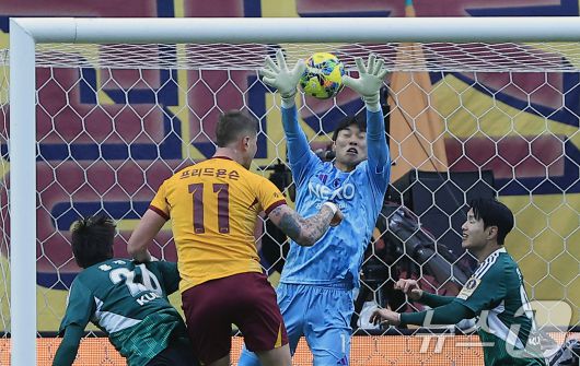 (서울=뉴스1) 박정호 기자 = 6일 오후 서울 마포구 월드컵로 서울월드컵경기장에서 열린 광주FC와 전북현대의 2025 하나은행 코리아컵 결승전에서 광주 프리드욘슨이 후반 동점골을 터트리고 있다. 2025.12.6/뉴스1pjh2035@news1.krCopyright ⓒ 뉴스1. All rights reserved. 무단 전재 및 재배포, AI학습 이용 금지.