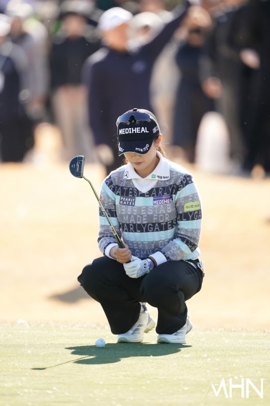 메디힐 박현경과 롯데 황유민 2경기가 열린 가운데, 박현경이 6번홀 경기를 펼치고 있다.
