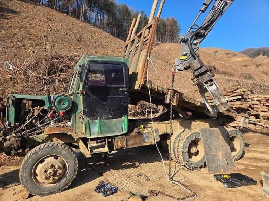 사고는 A씨(63)가 벌목 차량 수리를 위해 적재함을 나무로 지지해 올린 후 작업 중 지지해 놓은 나무가 이탈하면서 차량 적재함에 깔려 발생했다.