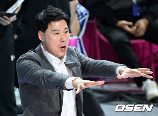 [OSEN=인천, 이대선 기자] 6일 인천 삼산월드체육관에서 프로배구 진에어 2025~26 V리그 흥국생명과 현대건설의 경기가 열렸다. 현대건설은 승점 20점으로 2위, 흥국생명은 승점 18점으로 3위를 기록하고 있다. 1세트 현대건설 강성형 감독이 작전을 지시하고 있다. 2025.12.06 /sunday@osen.co.kr