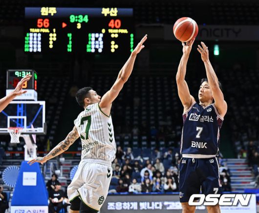 부산 KCC 허훈이 원주 DB 이선 알바노의 마크를 피해 3점슛을 시도하고 있다. 2025.12.06 / foto0307@osen.co.kr