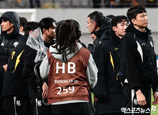 (엑스포츠뉴스 박지영 기자) 6일 오후 서울월드컵경기장에서 열린 '2025 하나은행 코리아컵 결승전' 광주FC와 전북 현대의 경기, 전북이 2:1의 스코어로 승리하며 5년 만에 더블(2관왕)을 달성했다. 경기 종료 후 전북 포옛 감독이 준우승 수상을 위해 무대로 나서는 광주 선수단과 인사를 나누고 있다.박지영 기자 jypark@xportsnews.com