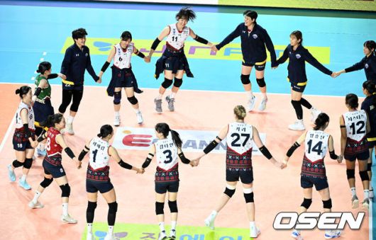 경기 종료 후 현대건설 선수들이 승리의 기쁨을 나누고 있다. 2025.12.06 /sunday@osen.co.kr