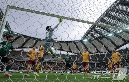 (서울=뉴스1) 박정호 기자 = 6일 오후 서울 마포구 월드컵로 서울월드컵경기장에서 열린 광주FC와 전북현대의 2025 하나은행 코리아컵 결승전에서 전북 티아고에 앞서 광주 노희동 골키퍼가 펀칭으로 크로스를 쳐내고 있다. 2025.12.6/뉴스1pjh2035@news1.krCopyright ⓒ 뉴스1. All rights reserved. 무단 전재 및 재배포, AI학습 이용 금지.