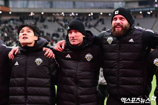 (엑스포츠뉴스 박지영 기자) 6일 오후 서울월드컵경기장에서 열린 '2025 하나은행 코리아컵 결승전' 광주FC와 전북 현대의 경기, 전북이 2:1의 스코어로 승리하며 5년 만에 더블(2관왕)을 달성했다. 경기 종료 후 전북 타노스 코치가 동료들과 세리머니를 하고 있다.박지영 기자 jypark@xportsnews.com
