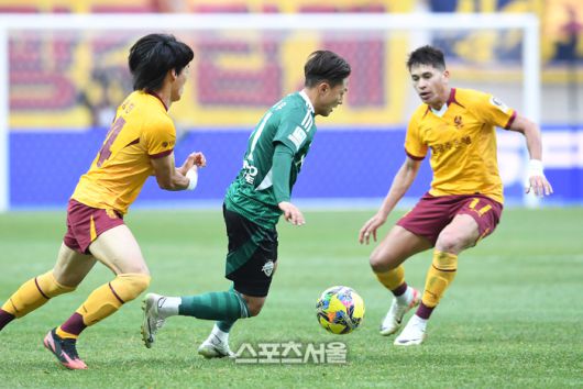 전북 현대 이승우(가운데)가 6일 서울월드컵경기장에서 열린 2025 하나은행 코리아컵 광주FC와의 결승전에서 드리블 돌파를 하고 있다. 2025. 12. 6.박진업 기자 upandup@sporttsseoul.com [기사제보 news@sportsseoul.com] Copyright ⓒ 스포츠서울&sportsseoul.com