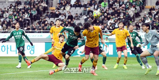 전북 현대 박진섭(가운데)가 6일 서울월드컵경기장에서 열린 2025 하나은행 코리아컵 광주FC와의 결승전에서 헤더슛을 하고 있다. 2025. 12. 6.박진업 기자 upandup@sporttsseoul.com [기사제보 news@sportsseoul.com] Copyright ⓒ 스포츠서울&sportsseoul.com