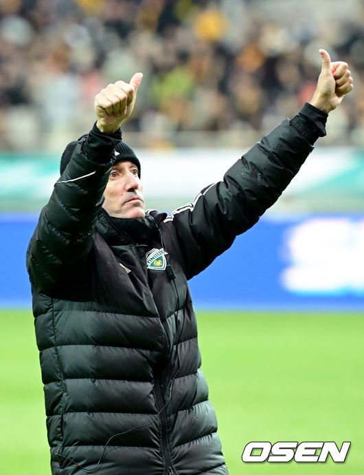 전북 타노스 코치가 우승을 기뻐하고 있다. 2025.12.06 /cej@osen.co.kr