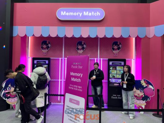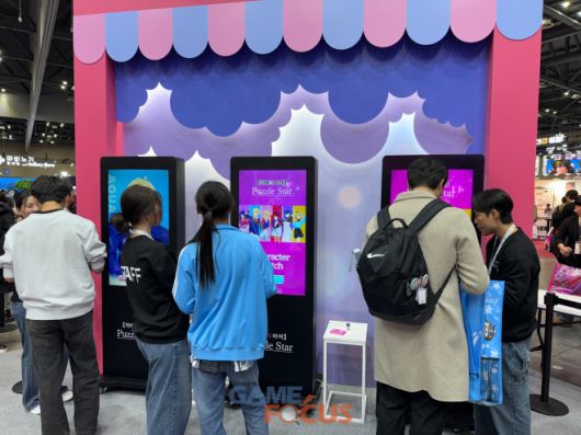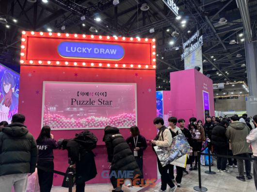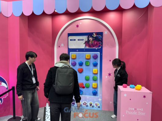 '【최애의 아이】Puzzle Star' 부스 공간에서는 미니 게임을 즐기고 선물을 받을 수 있는 체험형으로 꾸며졌다. 주요 등장 인물들로 구성된 대형 출시 예고 일러스트와 파스텔톤의 분홍색 테마가 눈길을 사로잡으며 출시에 대한 기대감을 끌어올렸다.