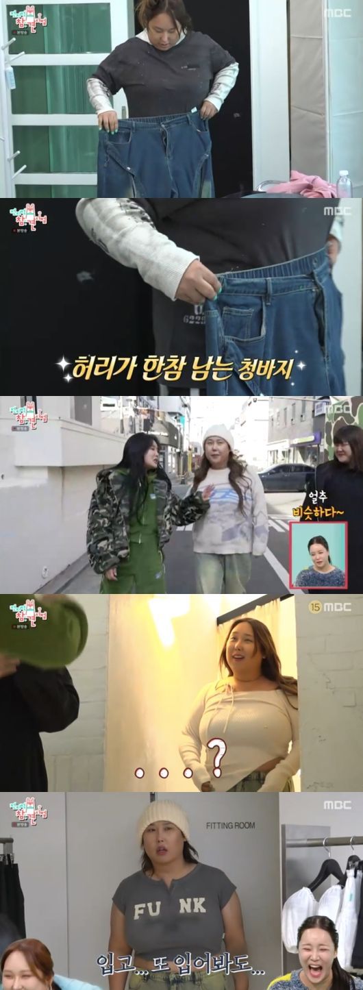 이들은 한 옷 가게를 방문했다. 풍자는 마음에 드는 옷을 입어 봤지만 너무 딱 맞는 사이즈에 의도치 않게 시스루가 되어 웃음을 자아냈다. 원피스였던 옷은 배가 드러나는 톱이 되기도. 결국 풍자는 늘어난 옷을 구매했고 “얼마나 더 빼야 하냐”라며 시무룩한 모습을 보였다.
